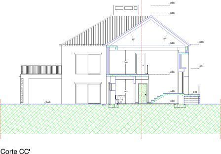 Projeto de Arquitetura de moradia unifamiliar em Vila Nova-de-Anços, Soure, em outubro de 2002. Ampliação e recuperação de habitação existente.